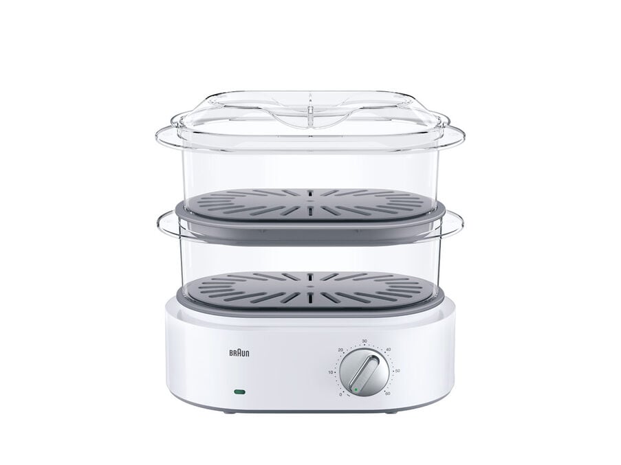 Dämpfen Sie schonend große Mengen an Lebensmitteln oder sogar ganze Mahlzeiten. Die transparenten Universalkörbe bieten Platz für verschiedenste Zutaten, von Hähnchenschenkeln und Fisch bis hin zu Kartoffeln und Spargel.