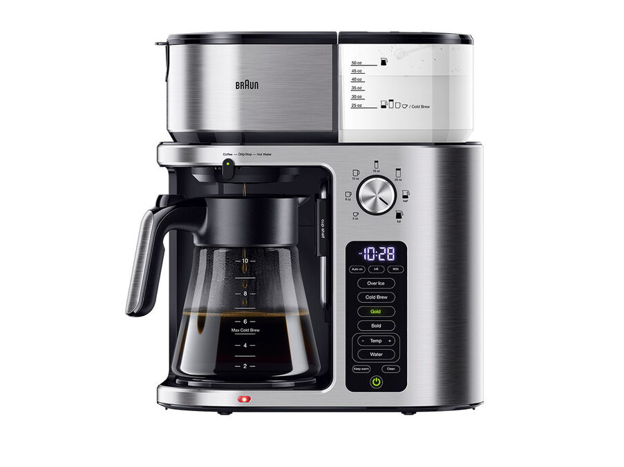 From single-serve to multi-serve and everything in between, now with cold brew, the Braun MultiServe Plus Coffee Maker in a sleek stainless steel easily adapts to your ever changing needs and coffee preferences. Our ExactBrew System delivers consistent, optimal brewing results in every cup. BrewChoice Plus customizes your coffee to your liking — now with Cold Brew, and a convenient MultiServe Dial system lets you select between seven convenient brew sizes, from a pod-free single cup to a full carafe. You can even brew a carafe of cold brew in just minutes – much faster than the traditional preparation. The Golden Cup certification by the Specialty Coffee Association means you’re guaranteed great-tasting drip coffee, cup after quality cup. The separate water dispenser even allows for hot water to make tea. Now, enjoy the convenience and versatility you crave, while never compromising the quality of your brew. It’s drip coffee, evolved.